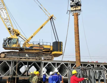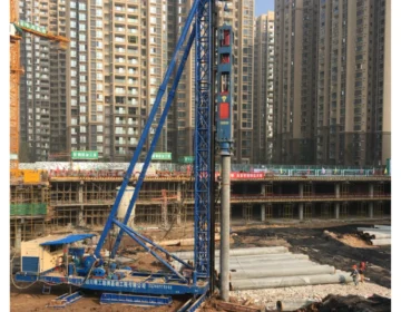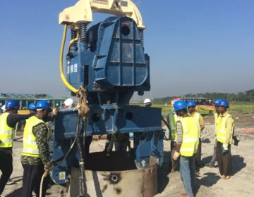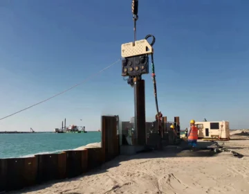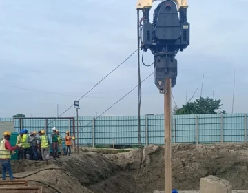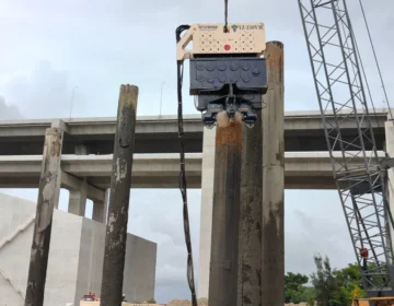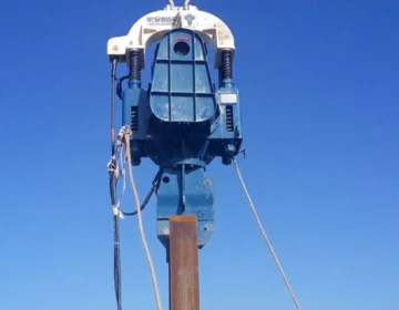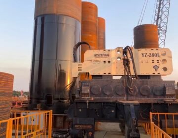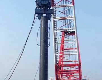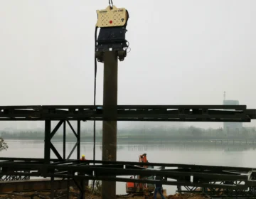 Электрический вибропогружатель DZJ135 используется для строительства портовых сооружений.