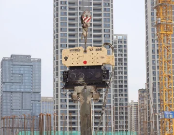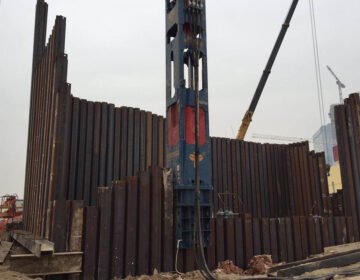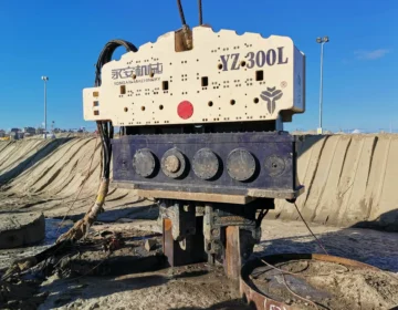 Гидравлический вибропогружатель YZ-90D используется для забивки стальных шпунтовых свай.