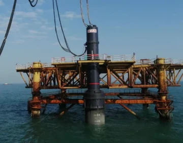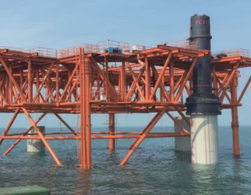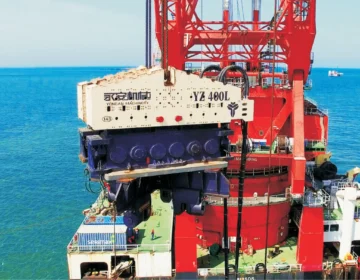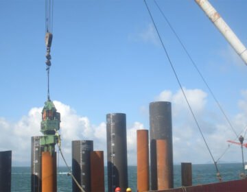 Гидравлический ударный молот YC-110 используется при строительстве морской ветряной электростанции.