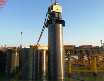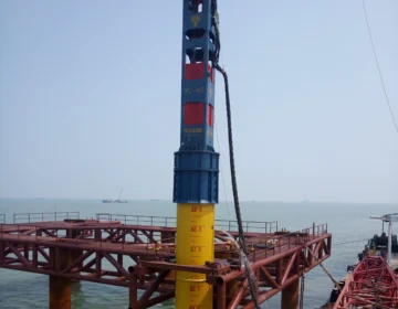 Гидравлический вибропогружатель YZ-400L для забивки свай на морской ветряной электростанции.