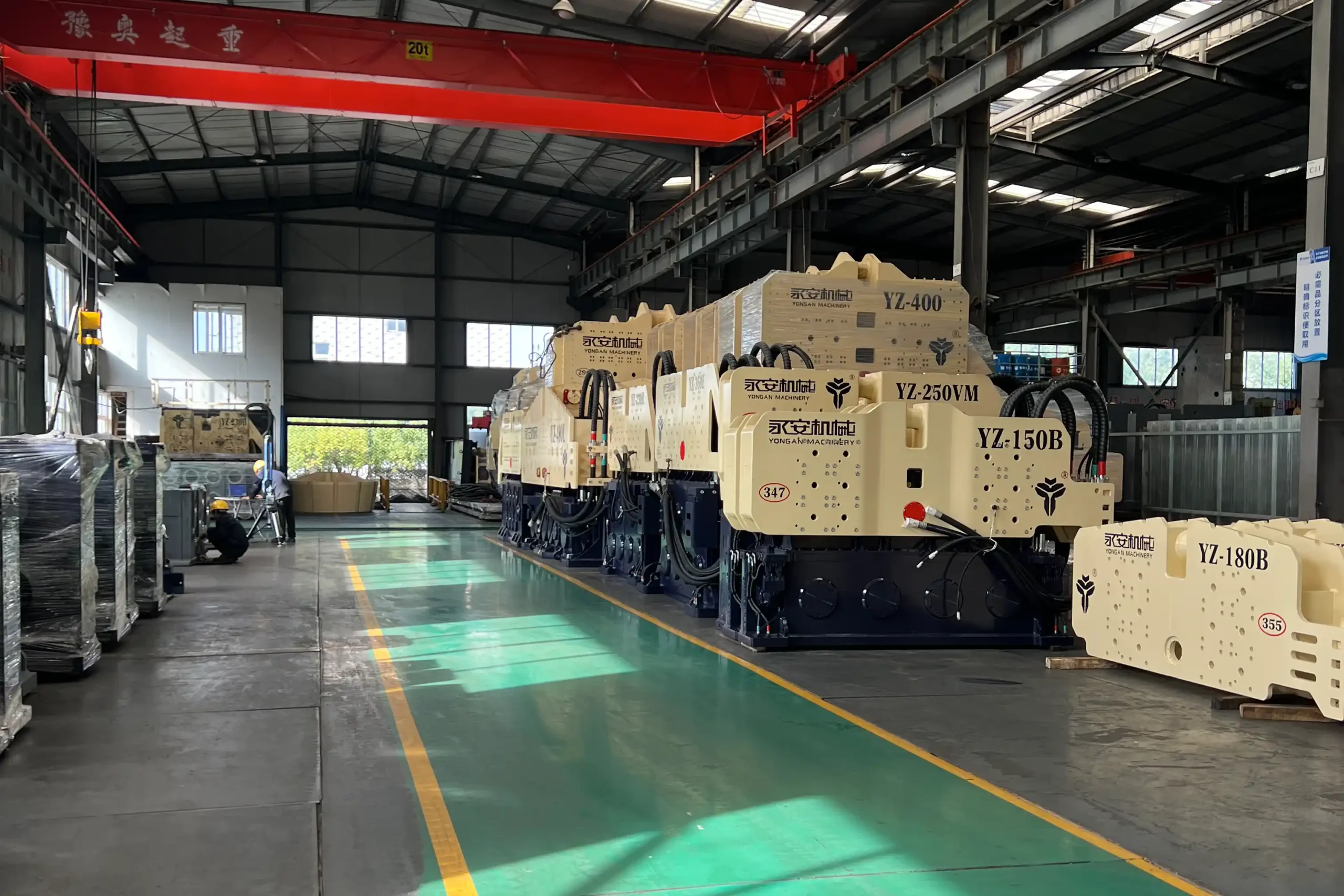Сермя YZ гидравлические вибропогружатели с обычной частотой вибрации являются «рабочими лошадками» вибрационной техники. Их прочная, но простая конструкция позволяет использовать эти установки для погружания и извлечения шпунты, труб и в тех случаях, когда нет ограничений на распространение вибраций в грунте. Фиксированный эксцентриковый момент делает этот тип вибропогружателя идеальным для менее чувствительных, тяжелых работ. Вибропогружатели с обычной частотой вибрации известны своей надежностью и мощностью, особенно в сочетании с нашими маслостанциями. Эти комплекты были тщательно подобраны друг к другу для обеспечения оптимальной производительности.